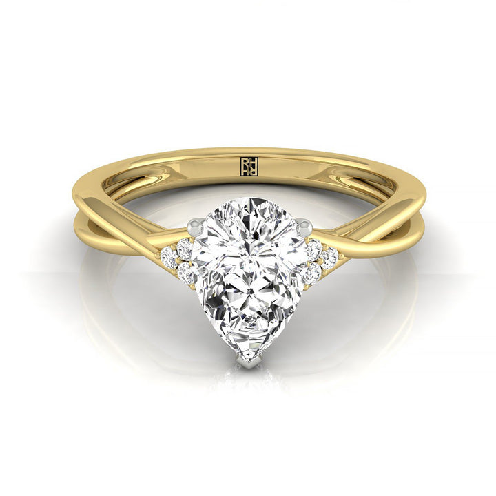 This Equisite 18k Yellow Gold Fancy Pear Engagement Ring Features A Twisted Shank, Which Adds An Elegant And Modern Touch To The Overall Aesthetic. The Centerpiece Of The Ring Is A Double Hidden Halo, Which Surrounds The Main Stone And Creates A Dazzling Display Of Brilliance. The Halo Is Adorned With 38 Prong-set Round Diamonds, Enhancing The Ring's Luxurious Appeal And Adding Extra Sparkle. This Ring Is A Stunning Symbol Of Love And Commitment, Designed To Impress And Delight.