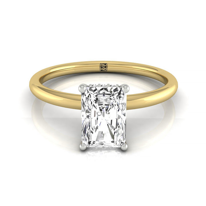 18ky Radiant Double Hidden Halo Solitaire Engagement Ring With 32 Prong Set Round Diamonds