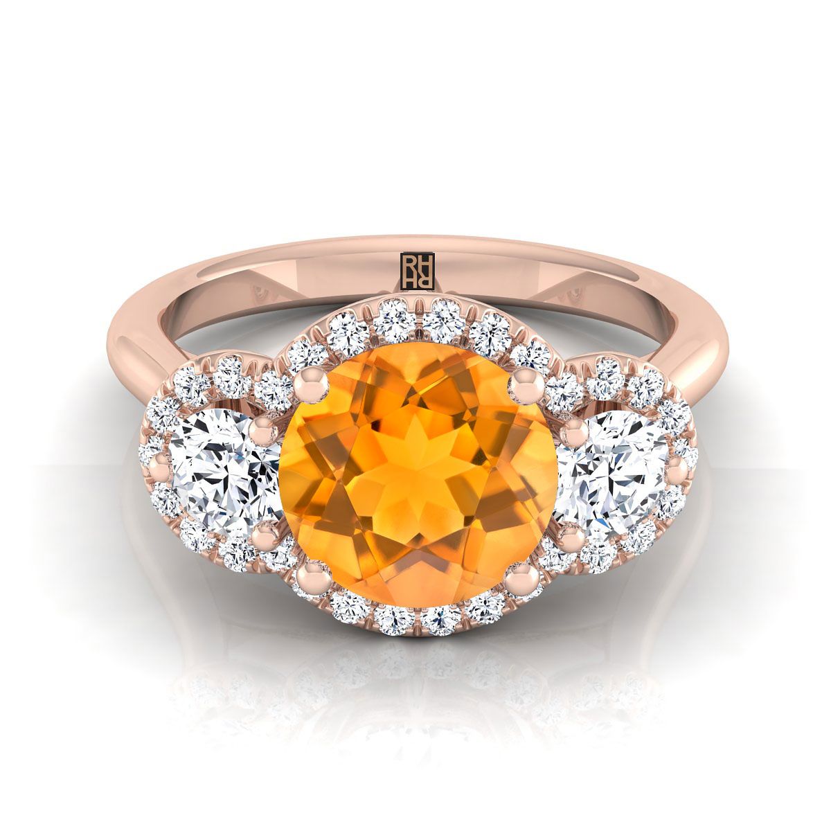 14k Rose Gold Engagement Ring With 6 Mm Round Citrine Center Stone And 34 Round Brilliant Diamonds Weighing 0.50ctw