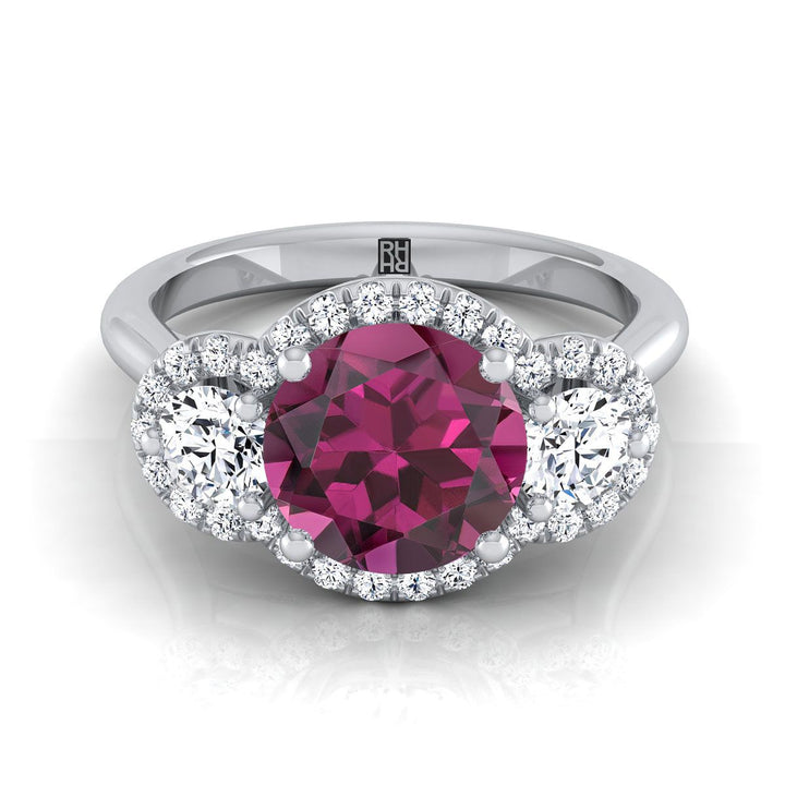 Platinum Round Brilliant Garnet French Pave Diamond Three Stone Engagement Ring -1/2ctw