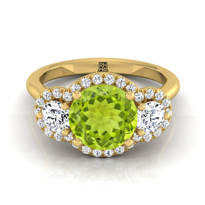 14K Yellow Gold Round Brilliant Peridot French Pave Diamond Three Stone Engagement Ring -1/2ctw