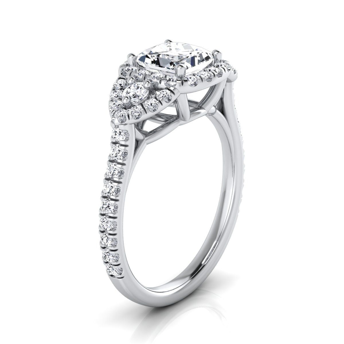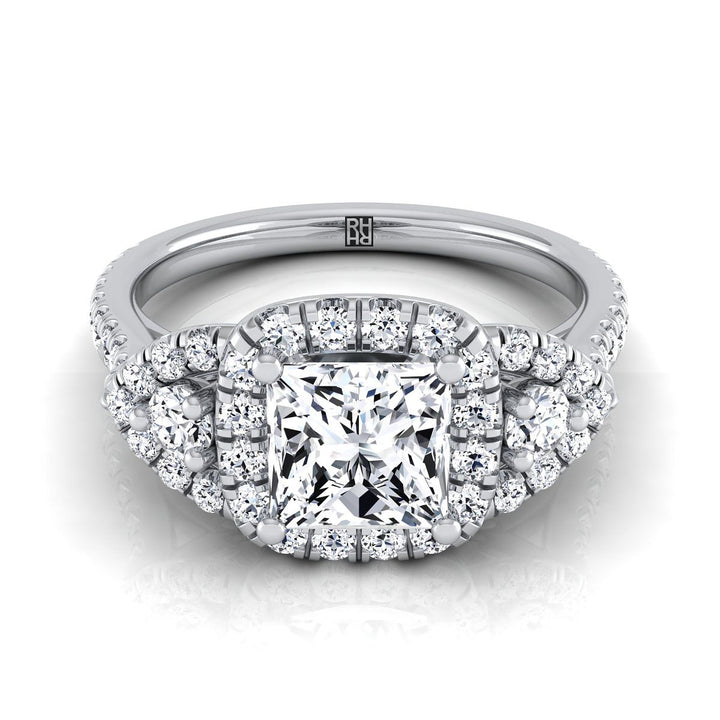 Platinum Princess Cut Diamond Delicate Three Stone Halo Pave Engagement Ring -5/8ctw