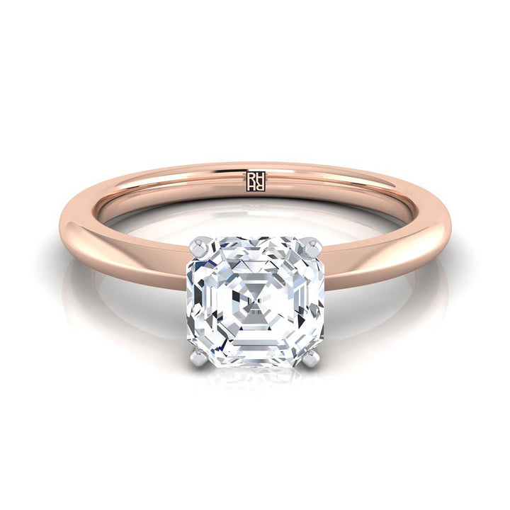 14K Rose Gold Asscher Cut Petite Knife Edge Solitaire Engagement Ring
