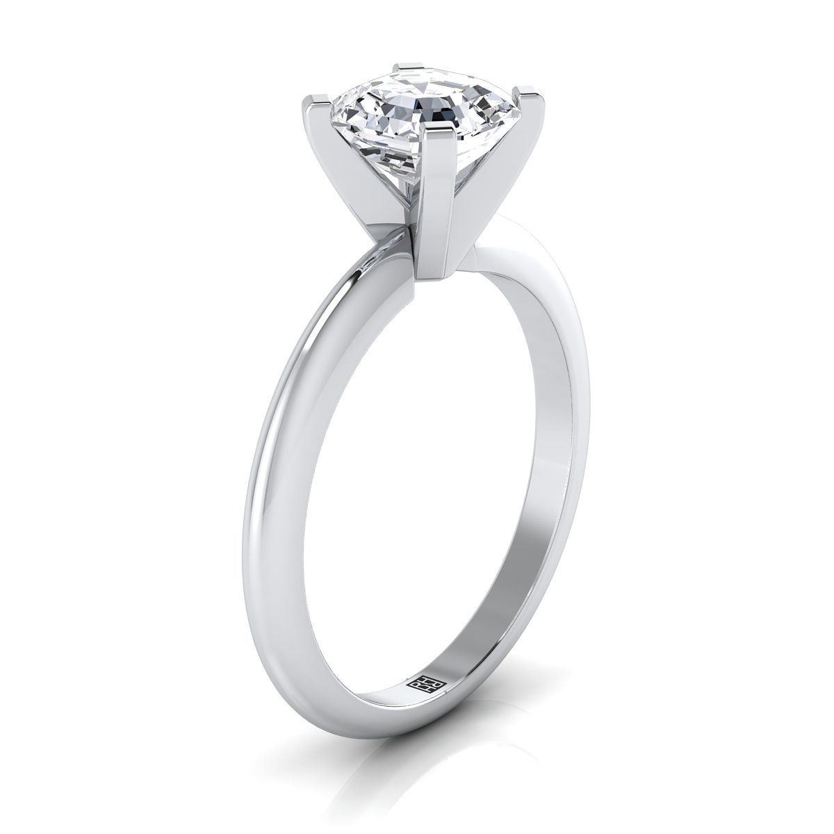 18K White Gold Asscher Cut Classic Low Base Solitaire Engagement Ring