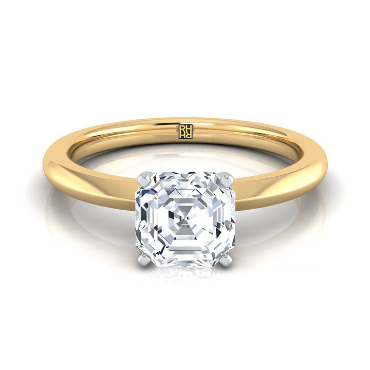 18K Yellow Gold Asscher Cut Petite Knife Edge Solitaire Engagement Ring