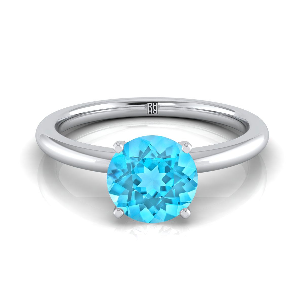 18K White Gold Round Brilliant Swiss Blue Topaz Round Comfort Fit Claw Prong Solitaire Engagement Ring