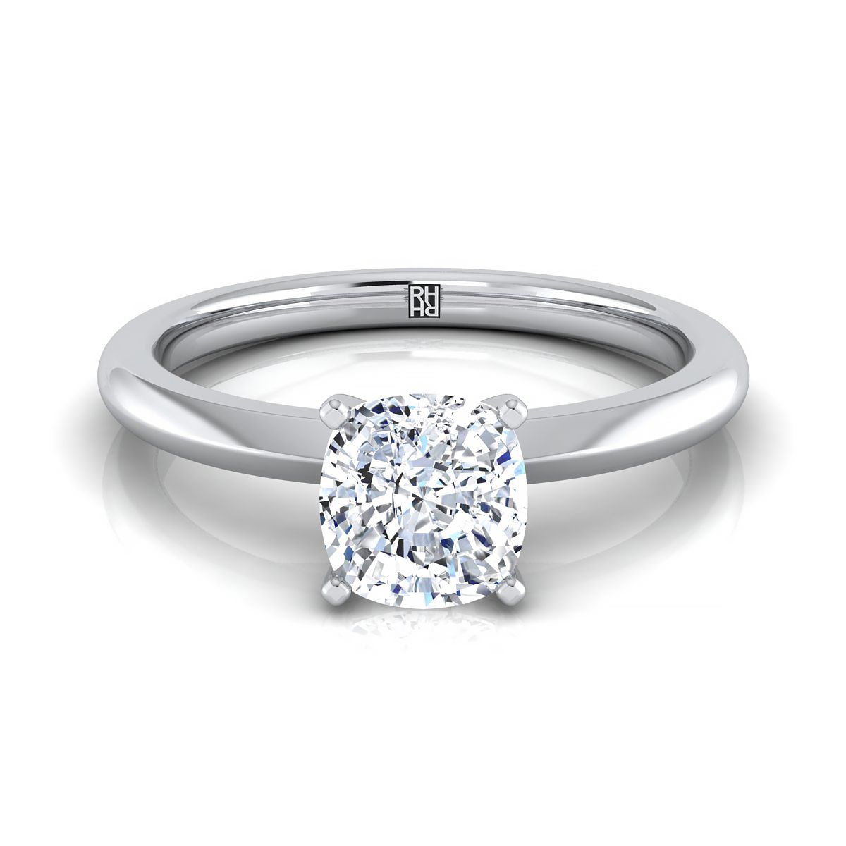 14K White Gold Cushion Petite Knife Edge Solitaire Engagement Ring
