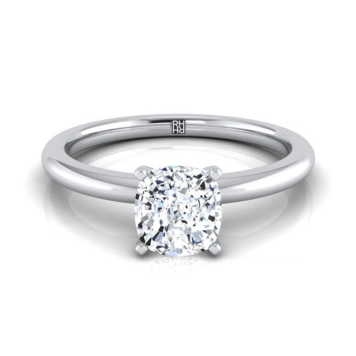 Platinum Cushion Round Comfort Fit Claw Prong Solitaire Engagement Ring