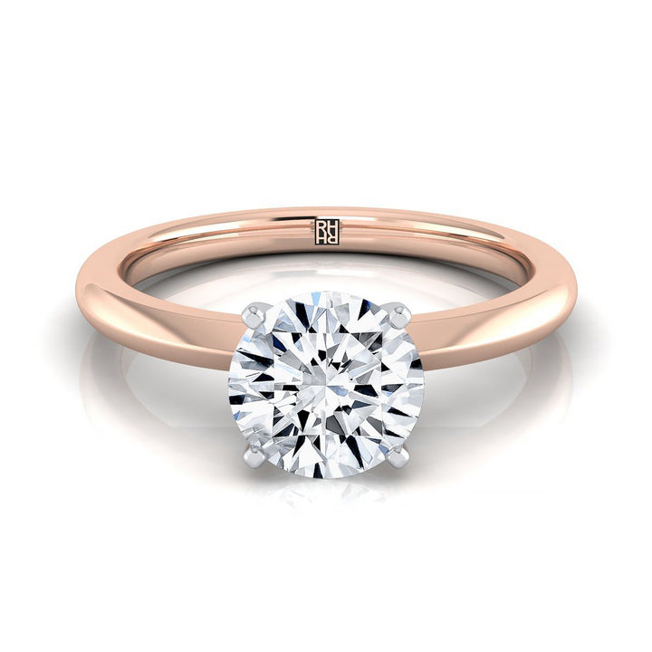 14K Rose Gold Round Brilliant Petite Knife Edge Solitaire Engagement Ring