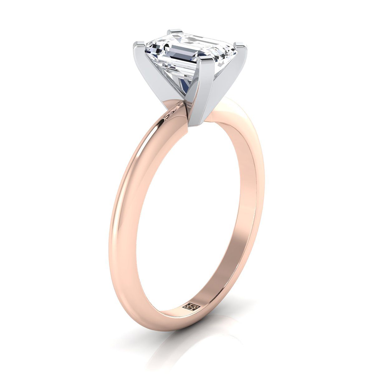 A Classic Statement Of Style, This Emerald Cut Solitaire Engagement Ring Showcases A Modern Knife Edge Shank And 4 Prong Center Setting In 14k Rose Gold