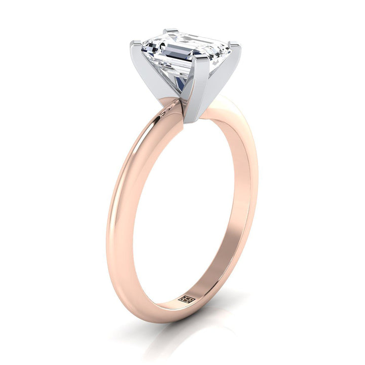 14K Rose Gold Emerald Cut Classic Low Base Solitaire Engagement Ring