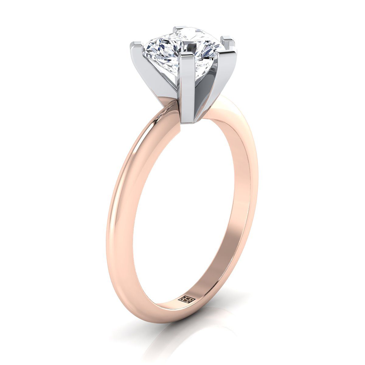 14K Rose Gold Heart Shape Center Classic Low Base Solitaire Engagement Ring
