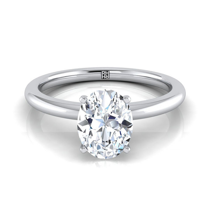 Platinum Oval Round Comfort Fit Claw Prong Solitaire Engagement Ring
