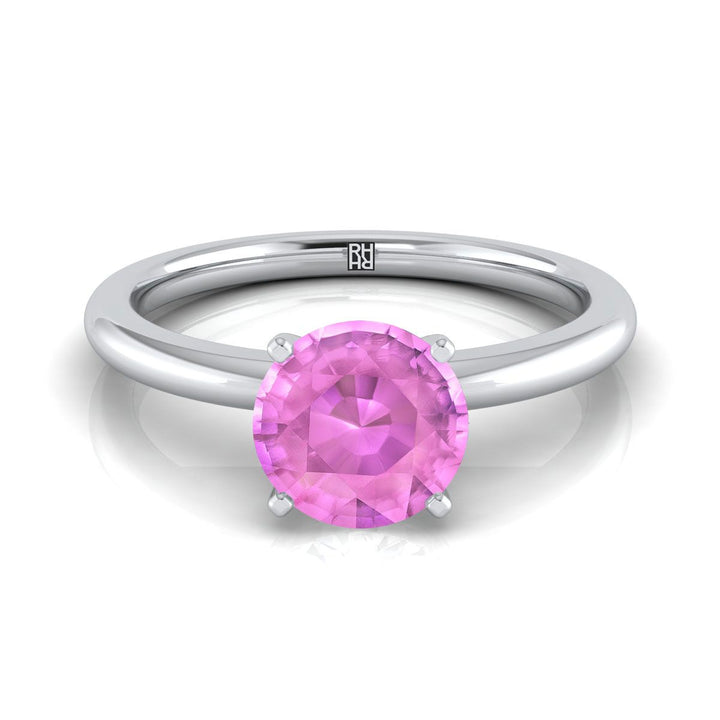 14K White Gold Round Brilliant Pink Sapphire Round Comfort Fit Claw Prong Solitaire Engagement Ring
