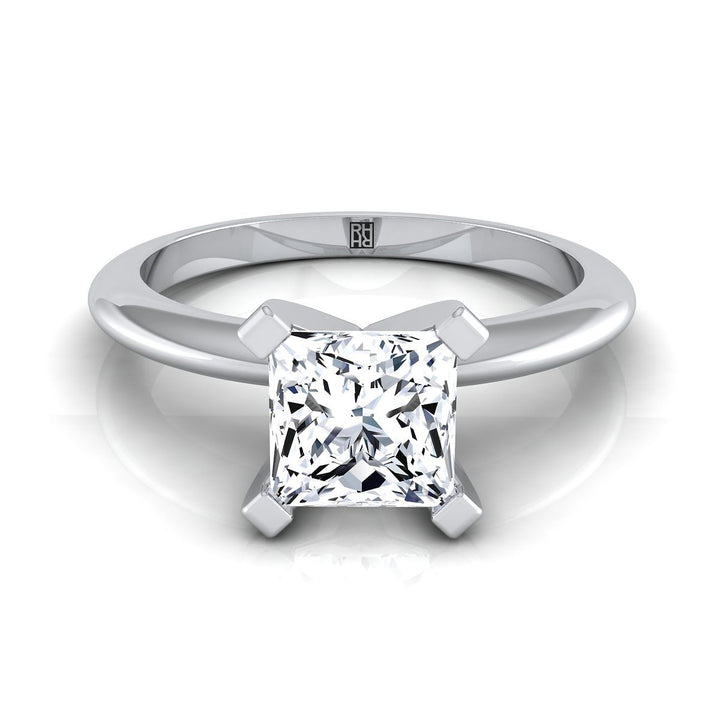 A Classic Statement Of Style, This Princess Cut Solitaire Engagement Ring Showcases A Modern Knife Edge Shank And 4 Prong Center Setting In 14k White Gold