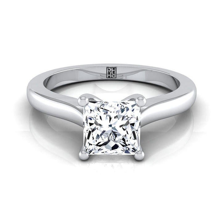 A Classic Statement Of Style, This Princess Cut Solitaire Engagement Ring Showcases A Rounded Shank And 4 Prong Center Setting In Platinum
