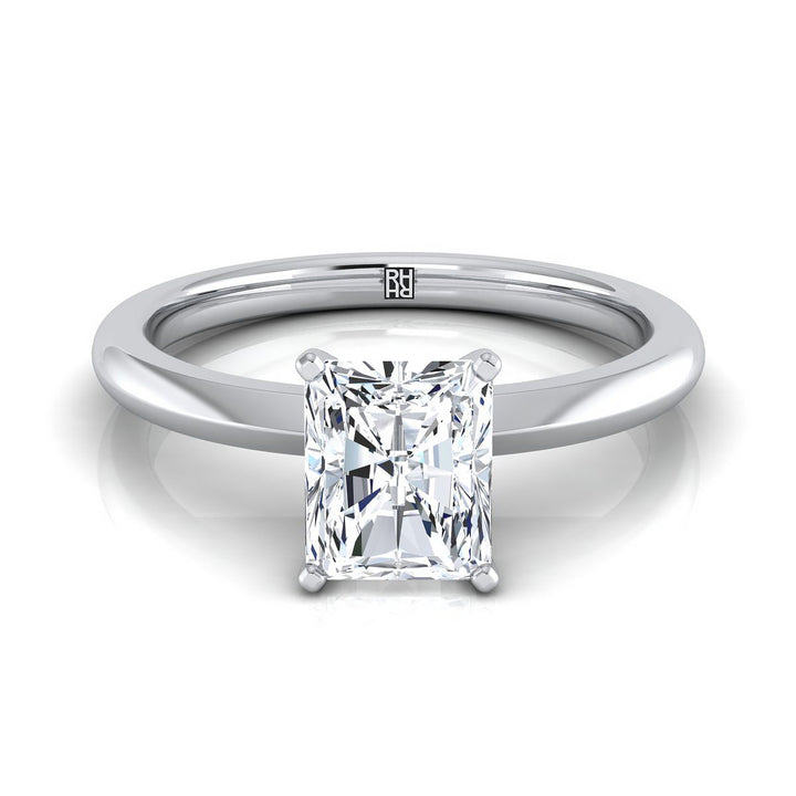 14K White Gold Radiant Cut Center Petite Knife Edge Solitaire Engagement Ring