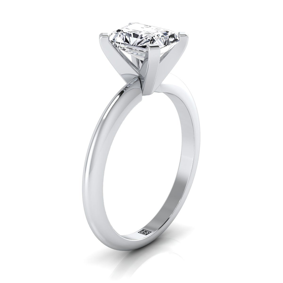 18K White Gold Radiant Cut Center Classic Low Base Solitaire Engagement Ring