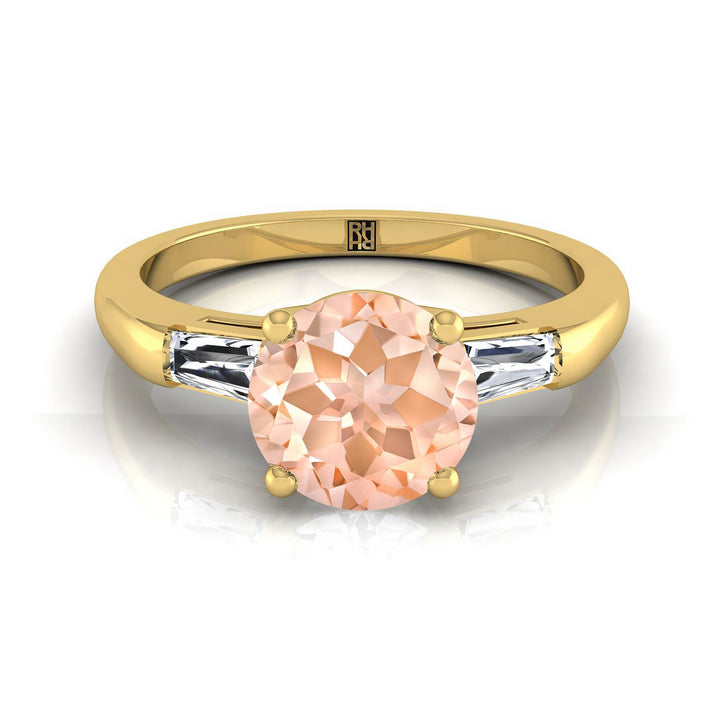 14k Yellow Gold Engagement Ring With 5 Mm Round Morganite Center Stone And 2 Tapered Baguettes Weighing 0.18ctw