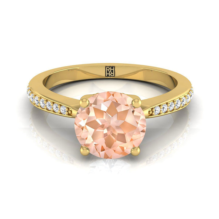 14K Yellow Gold Round Brilliant Morganite Tapered Pave Diamond Engagement Ring -1/8ctw