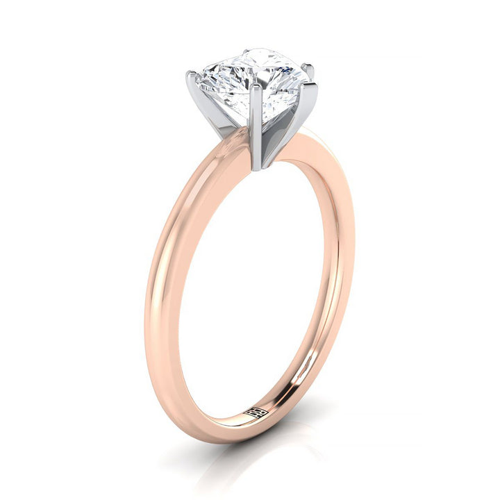 14K Rose Gold Heart Shape Center Round Comfort Fit Claw Prong Solitaire Engagement Ring