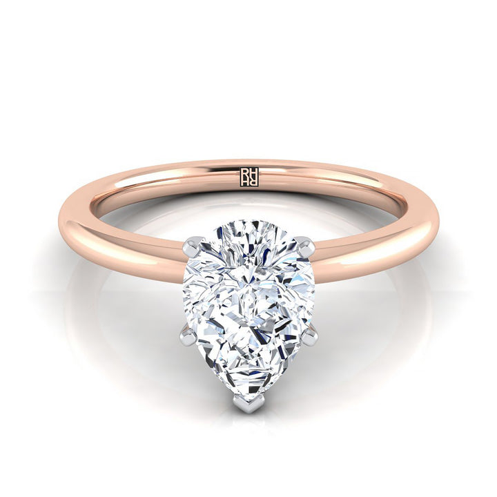 14K Rose Gold Pear Shape Center Round Comfort Fit Claw Prong Solitaire Engagement Ring