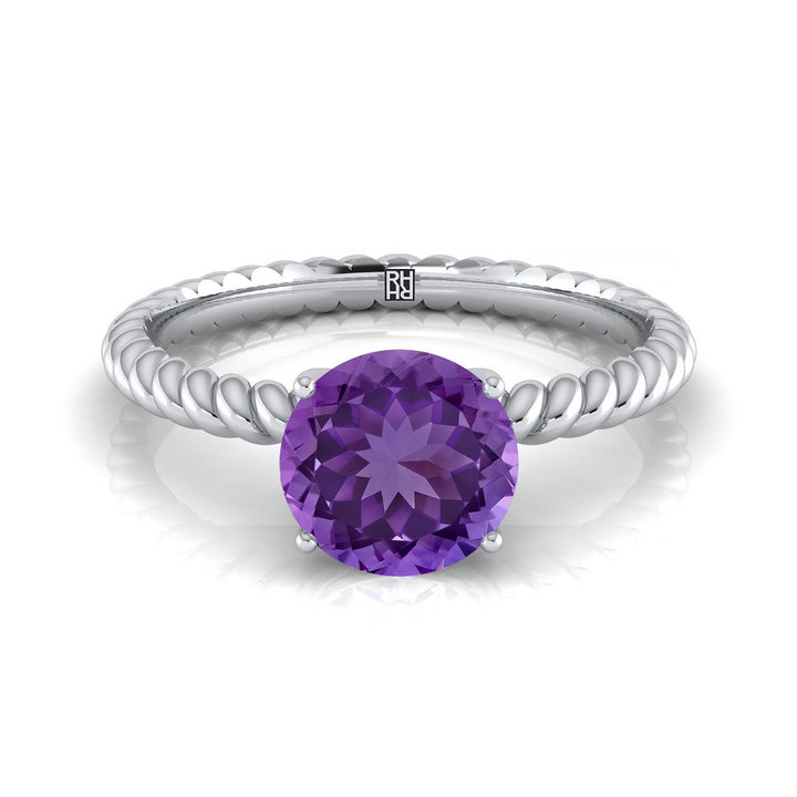 14k White Gold Engagement Ring With 6 Mm Round Amethyst Center Stone And Rope Design Shank
