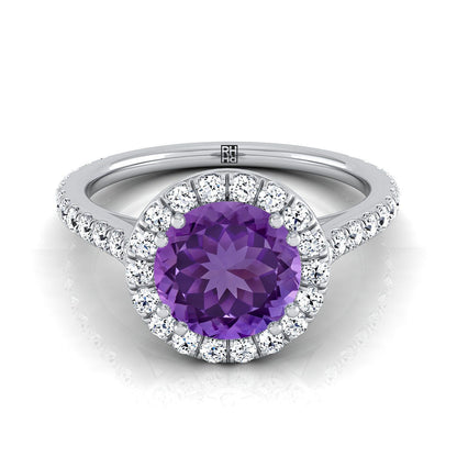 14k White Gold Engagement Ring With 6 Mm Round Amethyst Center Stone And 42 Brilliant Cut Diamonds Weighing 0.45ctw