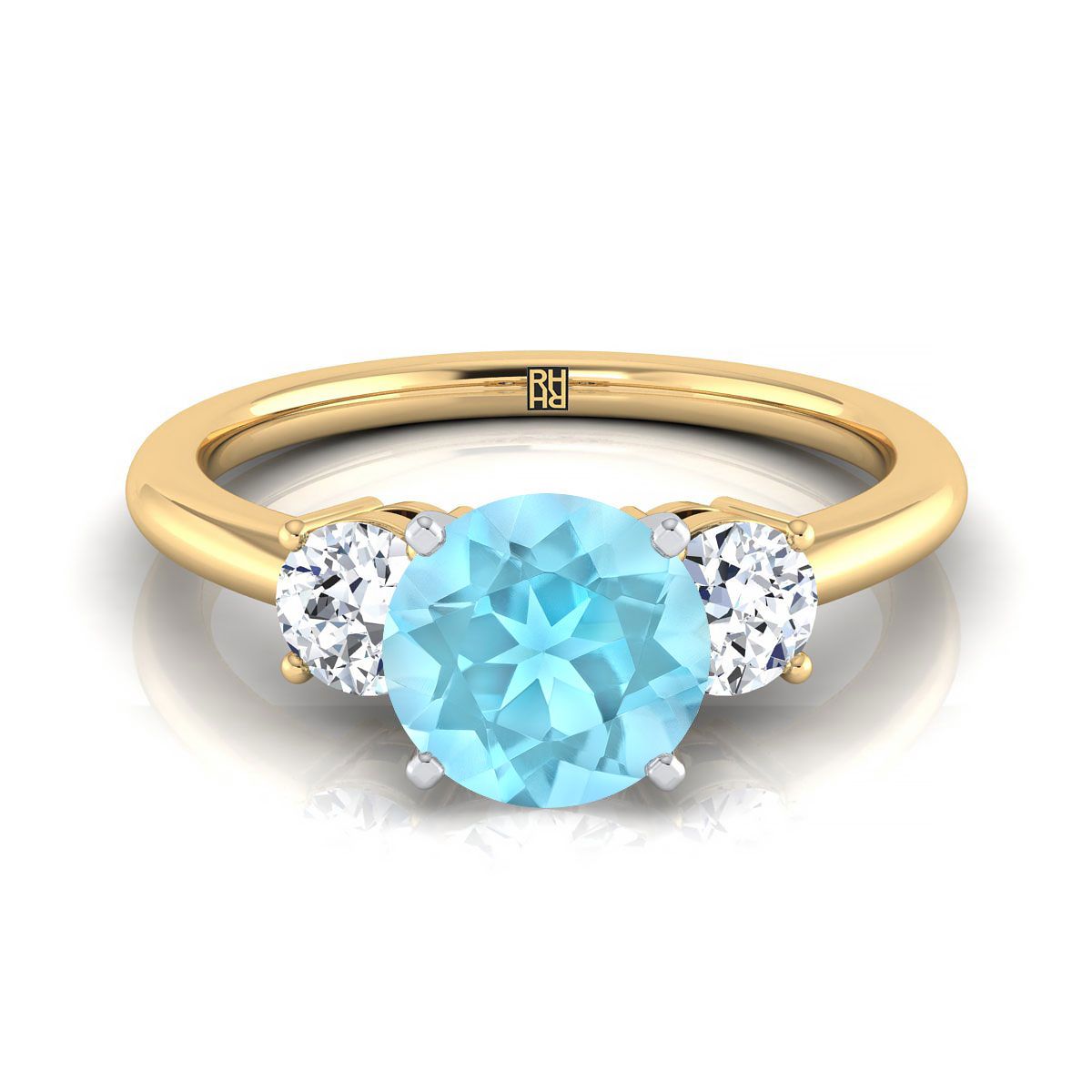 14k Yellow Gold Engagement Ring With 6 Mm Round Aquamarine Center Stone And 2 Round Brilliant Diamonds Weighing 0.25ctw