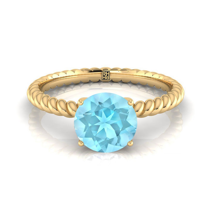 14k Yellow Gold Engagement Ring With 6 Mm Round Aquamarine Center Stone And Rope Design Shank