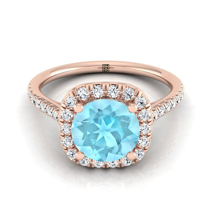 14K Rose Gold Round Brilliant Aquamarine Simple Prong Set Halo Engagement Ring -1/3ctw