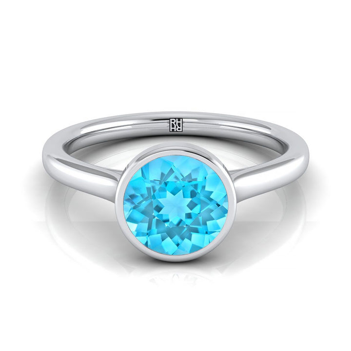 18K White Gold Round Brilliant Swiss Blue Topaz Simple Bezel Solitaire Engagement Ring