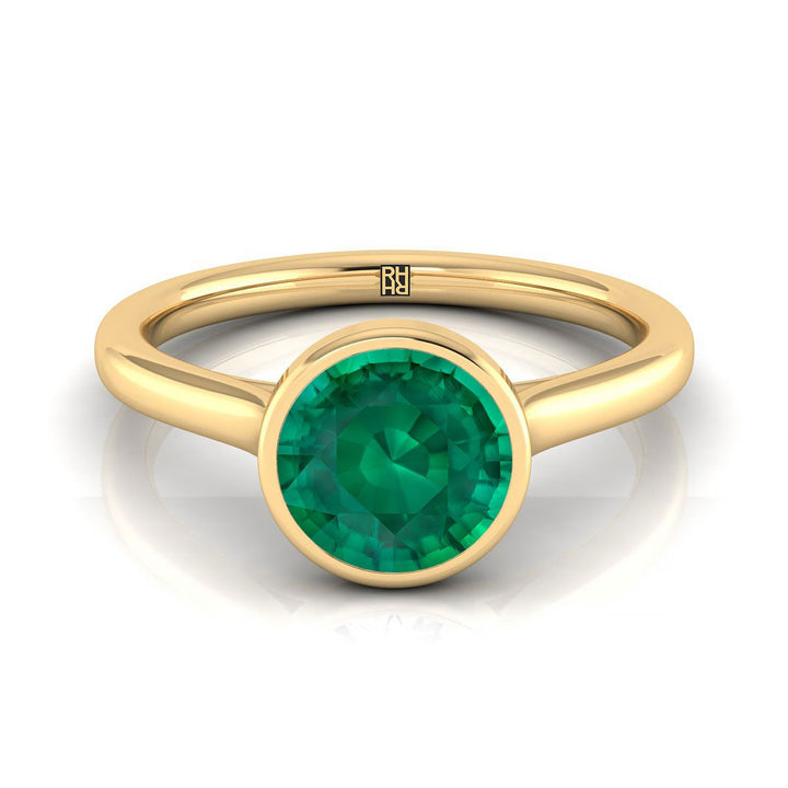 18K Yellow Gold Round Brilliant Emerald Simple Bezel Solitaire Engagement Ring