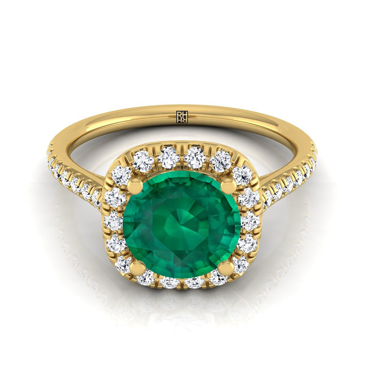18k Yellow Gold Engagement Ring With 6 Mm Round Emerald Center Stone And 36 Round Brilliant Diamonds Weighing 0.33ctw