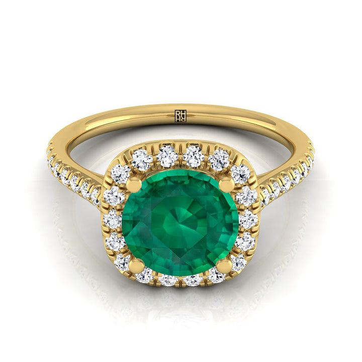 18K Yellow Gold Round Brilliant Emerald Simple Prong Set Halo Engagement Ring -1/3ctw