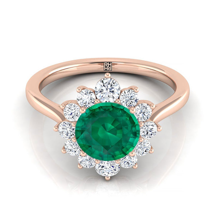 14k Rose Gold Engagement Ring With 6 Mm Round Emerald Center Stone And 12 Brilliant Cut Diamonds Weighing 0.48ctw