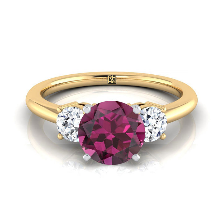 14K Yellow Gold Round Brilliant Garnet Perfectly Matched Round Three Stone Diamond Engagement Ring -1/4ctw