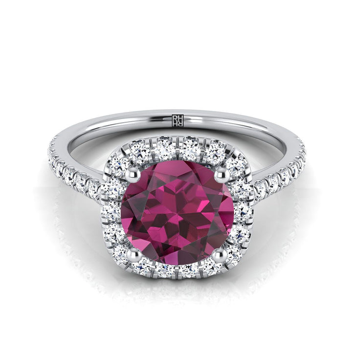Platinum Round Brilliant Garnet Halo Diamond Pave Engagement Ring -1/3ctw