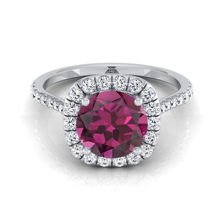 Platinum Round Brilliant Garnet Shared Prong Diamond Halo Engagement Ring -3/8ctw