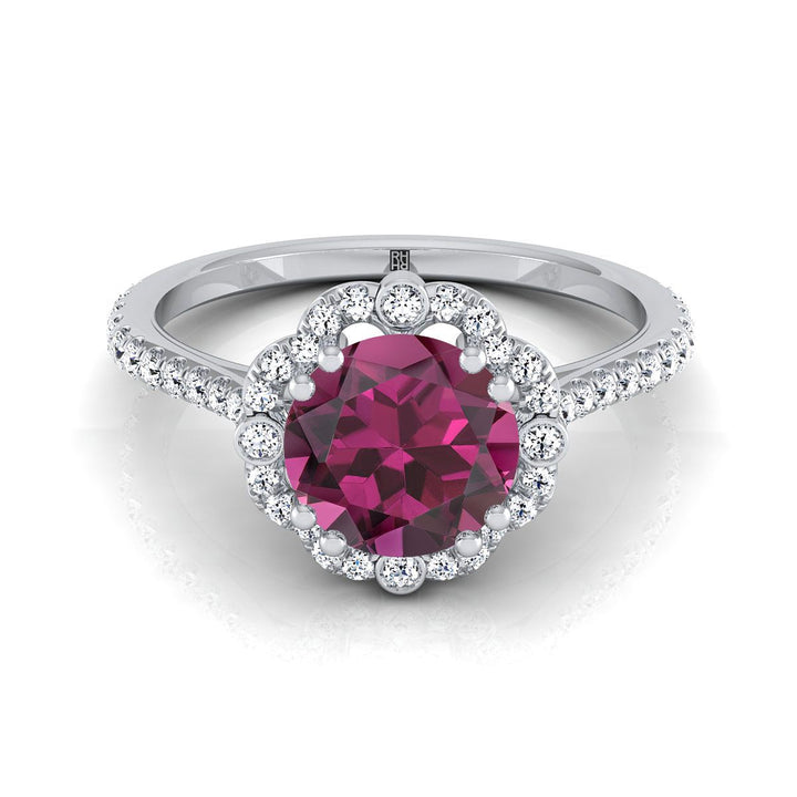 18k White Gold Engagement Ring With 6 Mm Round Garnet Center Stone And 12 Round Brilliant Diamonds Weighing 0.10ctw
