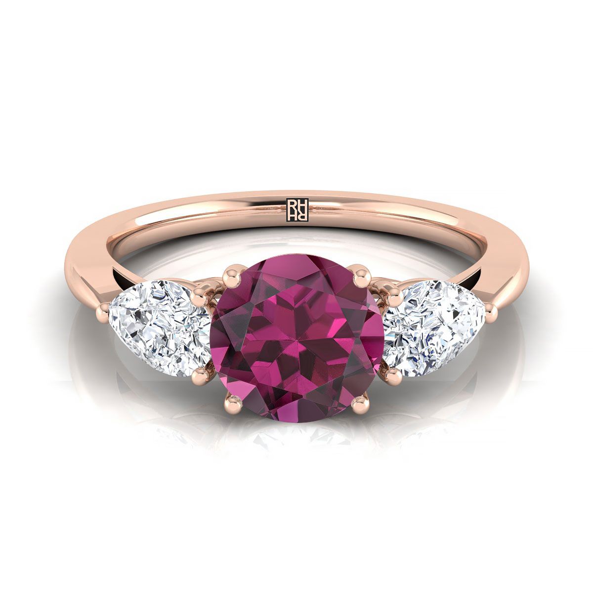 14K Rose Gold Round Brilliant Garnet Perfectly Matched Pear Shaped Three Diamond Engagement Ring -7/8ctw