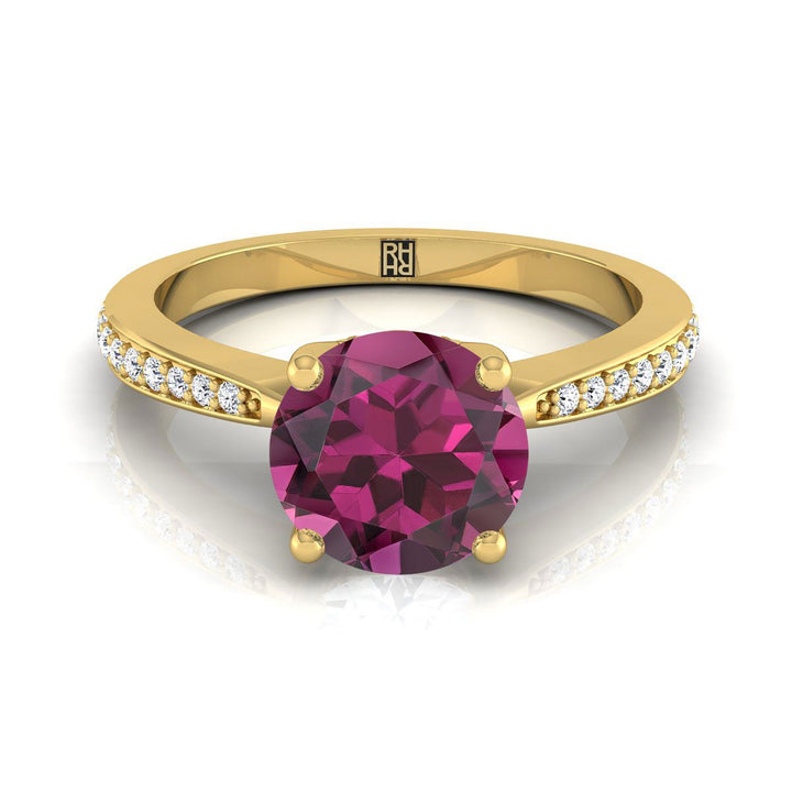 14K Yellow Gold Round Brilliant Garnet Tapered Pave Diamond Engagement Ring -1/8ctw