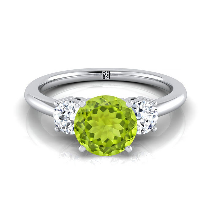 18K White Gold Round Brilliant Peridot Perfectly Matched Round Three Stone Diamond Engagement Ring -1/4ctw