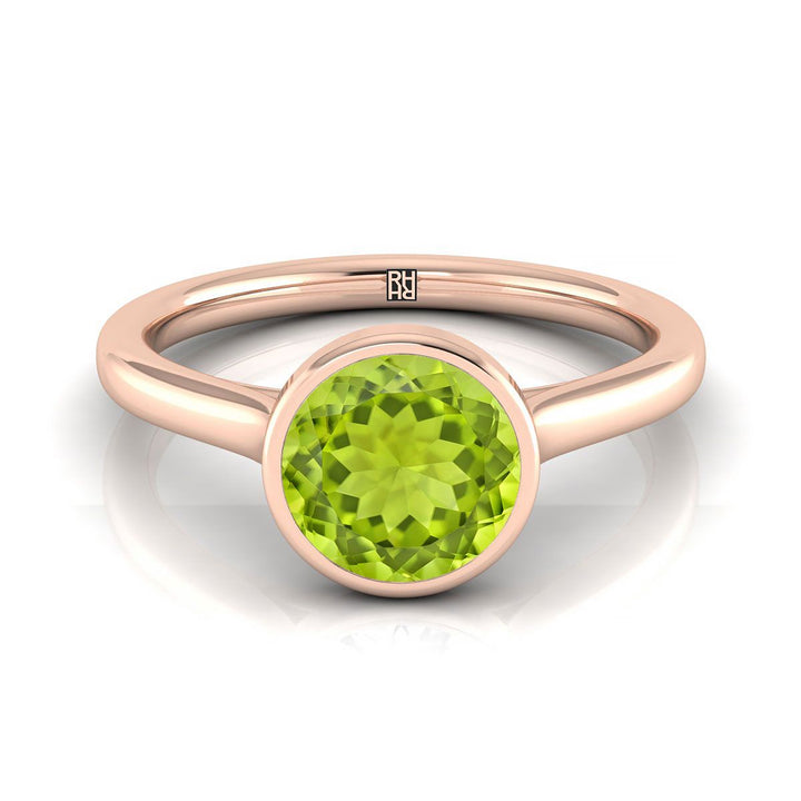 14K Rose Gold Round Brilliant Peridot Simple Bezel Solitaire Engagement Ring