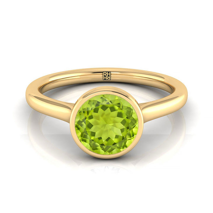 14K Yellow Gold Round Brilliant Peridot Simple Bezel Solitaire Engagement Ring