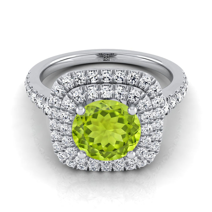 14K White Gold Round Brilliant Peridot Double Halo with Scalloped Pavé Diamond Engagement Ring -1/2ctw