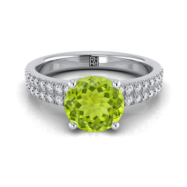 14K White Gold Round Brilliant Peridot Double Pave Diamond Row Engagement Ring -1/4ctw