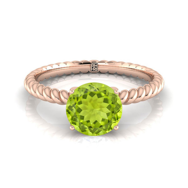 14k Rose Gold Engagement Ring With 6 Mm Round Peridot Center Stone And Rope Design Shank