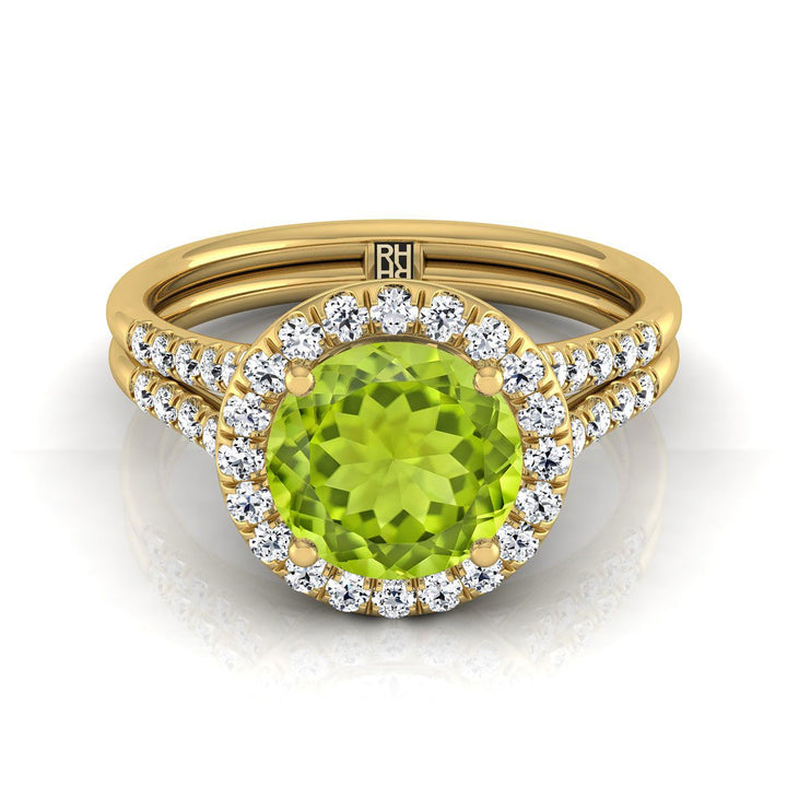 18k Yellow Gold Engagement Ring With 6 Mm Round Peridot Center Stone And 44 Round Brilliant Diamonds Weighing 0.40ctw