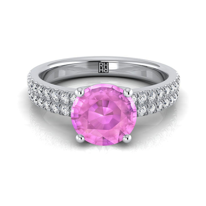 14K White Gold Round Brilliant Pink Sapphire Double Pave Diamond Row Engagement Ring -1/4ctw